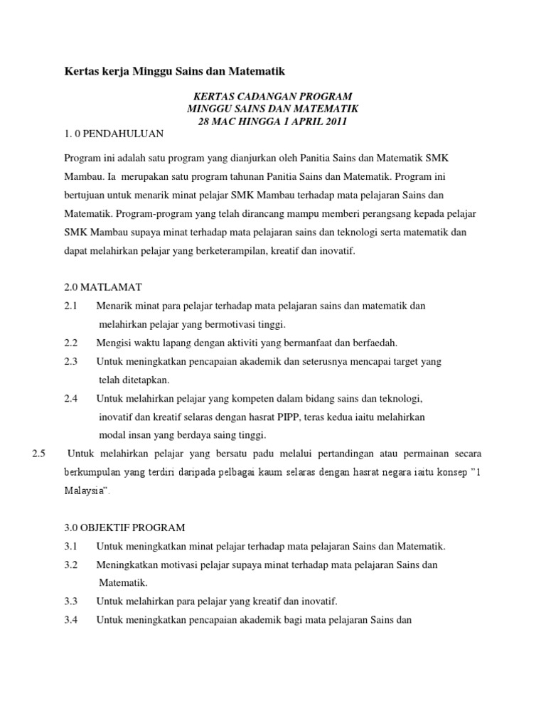 Kertas Kerja Minggu Sains Dan Matematik Pdf