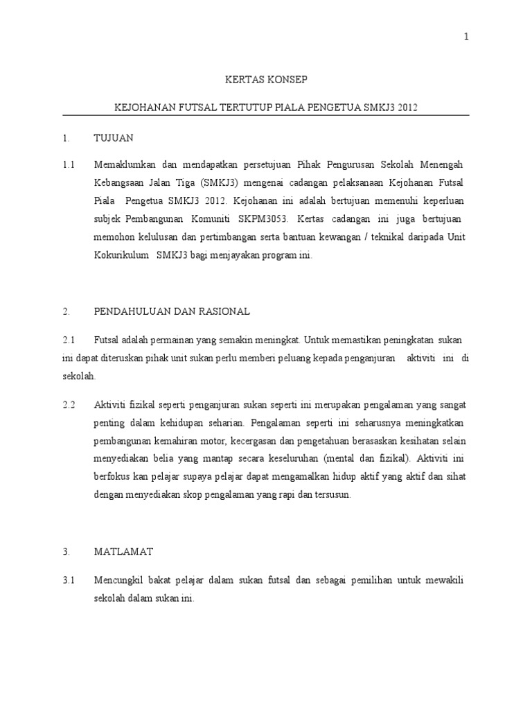 Kertas Cadangan Kejohanan Futsal Pdf